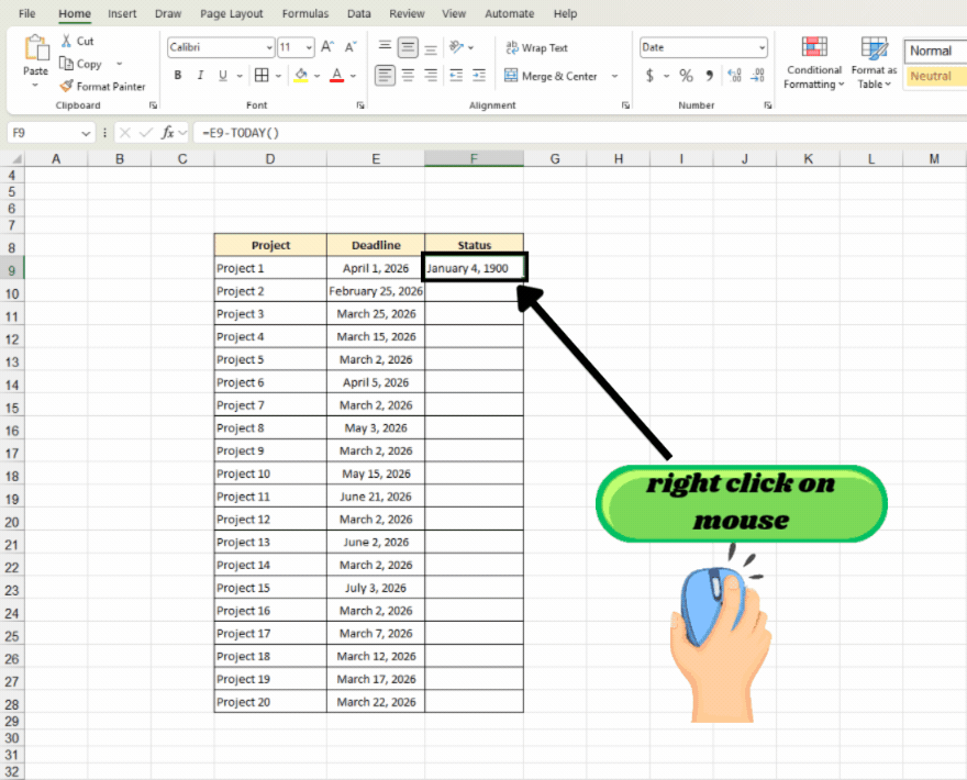 Step 2: Format the Deadline Column as Date