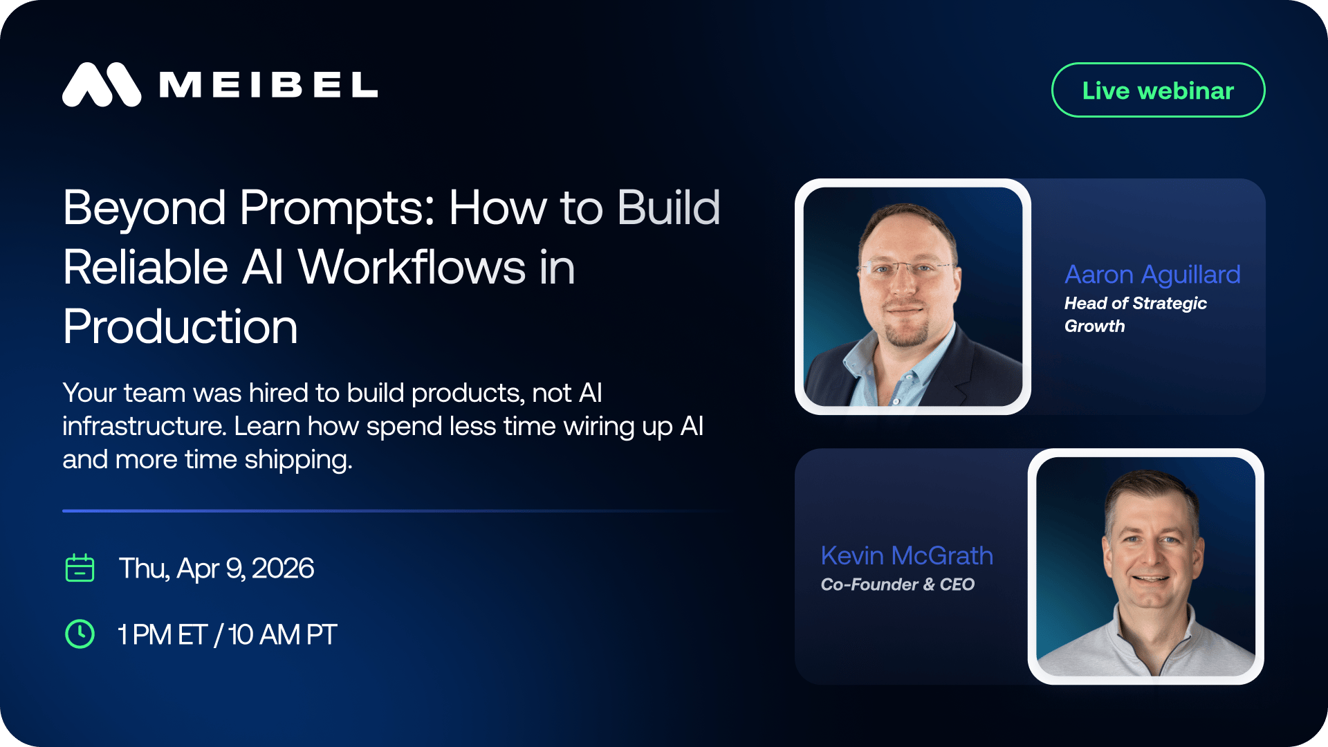 On Thursday, April 9th (1 pm ET), Meibel is hosting a free webinar to show you the three core capabilities that help teams spend less time wiring up AI: Context, Control, and Confidence.